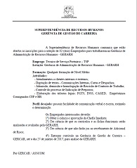 A Superintendência de Recursos Humanos comunica que estão abertas as inscrições para a seleção de 02 (dois) Empregados para trabalharem na Gerência de Administração de Recursos Humanos - GERARH.