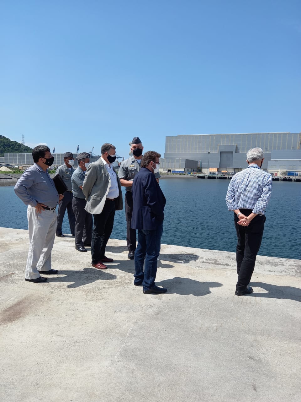 O diretor-presidente da CDRJ, Francisco Antonio de Magalhães Laranjeira; o diretor de Gestão Portuária, Mario Povia; o gestor de VTMIS do Porto do Rio de Janeiro, Marcelo Villas-Bôas; e o especialista portuário Renato Diniz foram recepcionados pelo comandante da Força de Submarinos, Contra-Almirante Thadeu Marcos Orosco Coelho Lobo. Também estiveram presentes o comandante da BSIM, Capitão de Mar e Guerra Fernando de Luca Marques de Oliveira, e o assessor-chefe do Programa de Submarinos da Marinha, Contra-Almirante Luiz Roberto Cavalcanti Valicente.