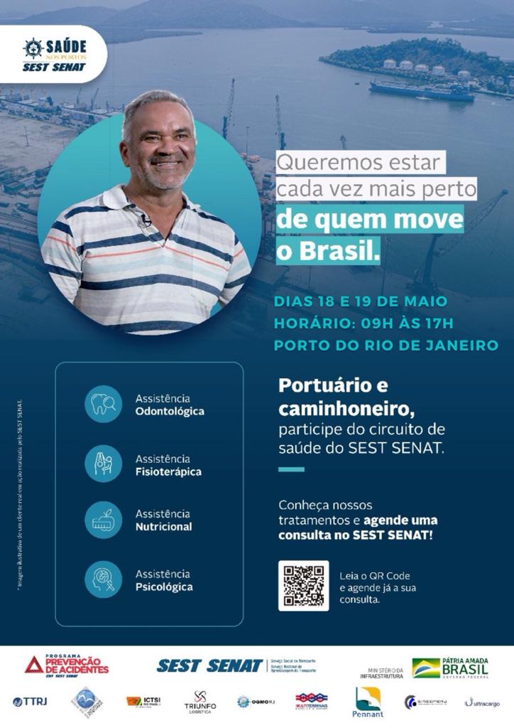 A edição 2021 do projeto ‘Saúde nos Portos’, que foi um sucesso no Porto de Itaguaí, acontecerá também no Porto do Rio de Janeiro nos próximos dias 18 e 19 de maio. Os atendimentos aos portuários e caminhoneiros serão realizados no Portão 24, das 9h às 17h.